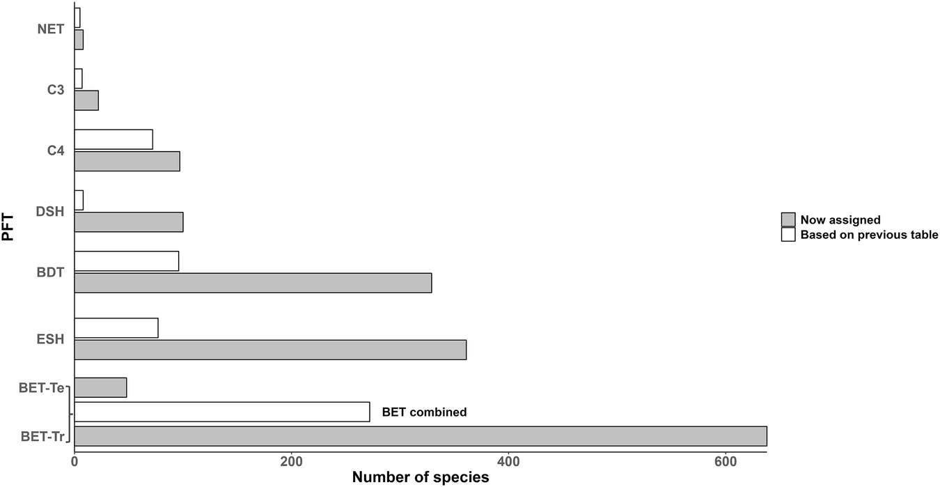 As a result, the researchers achieved a sixfold increase in the number of species from the TRY plant traits database that could be linked to the JULES PFT classes, up from 265 to 1,603 (see graph below).